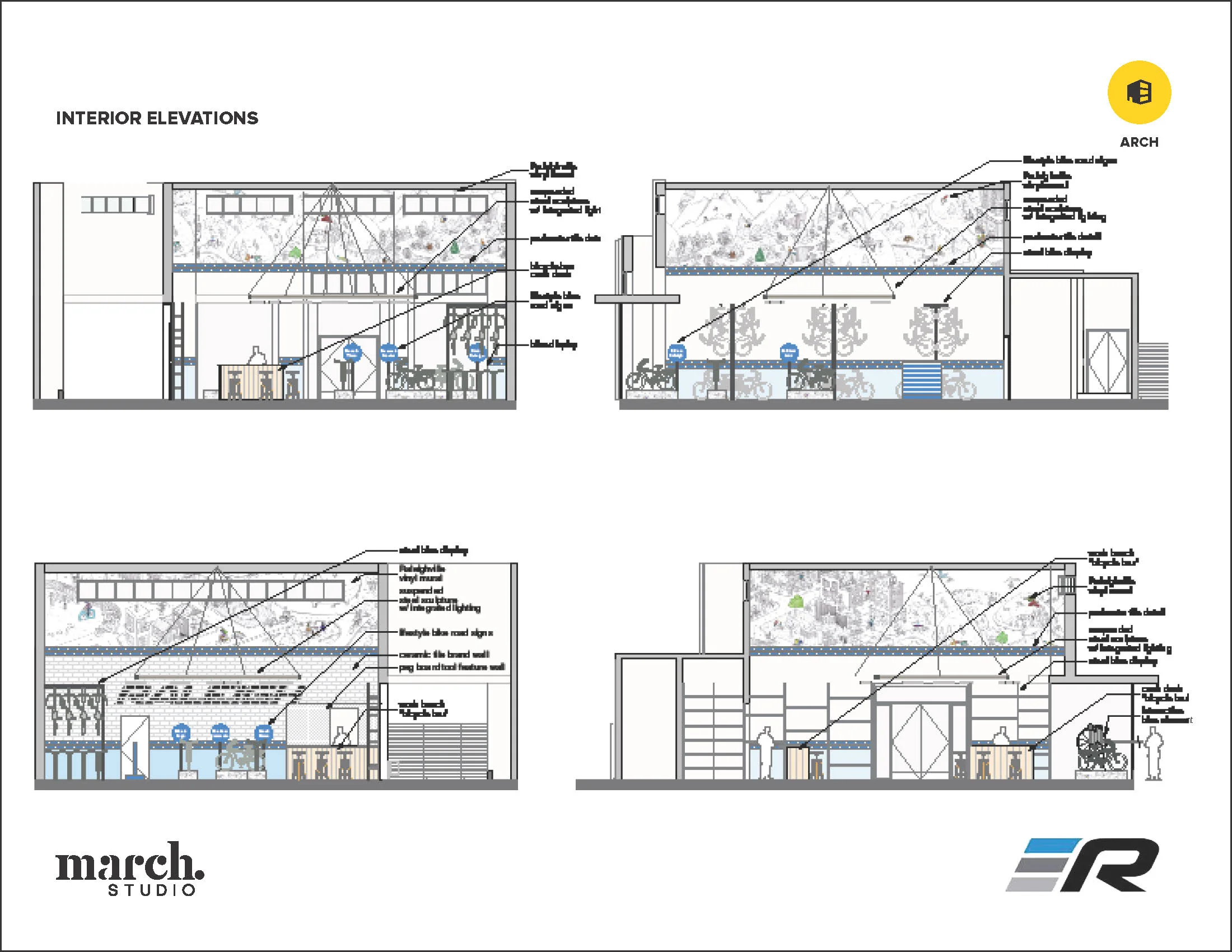 Raleigh Bicycle Company from Nottingham, UK came to us with a vision for their new flagship store in Santa Monica, California. This historical company was undergoing a rebrand to reintroduce Raleigh bikes to the American public. We worked with the branding team to flush out this new identity for the Santa Monica audience. The first phase of our CVS process is LISTENING, where we gather relevant information from sitting down with the client and discussing their goals. This initial platform establishes our reading of the brand and its positioning. We grow our understanding of the BRAND through more design research, exploring the market, precedents, competition and any other relevant factors that will help us to thoughtfully address the goals of our client.