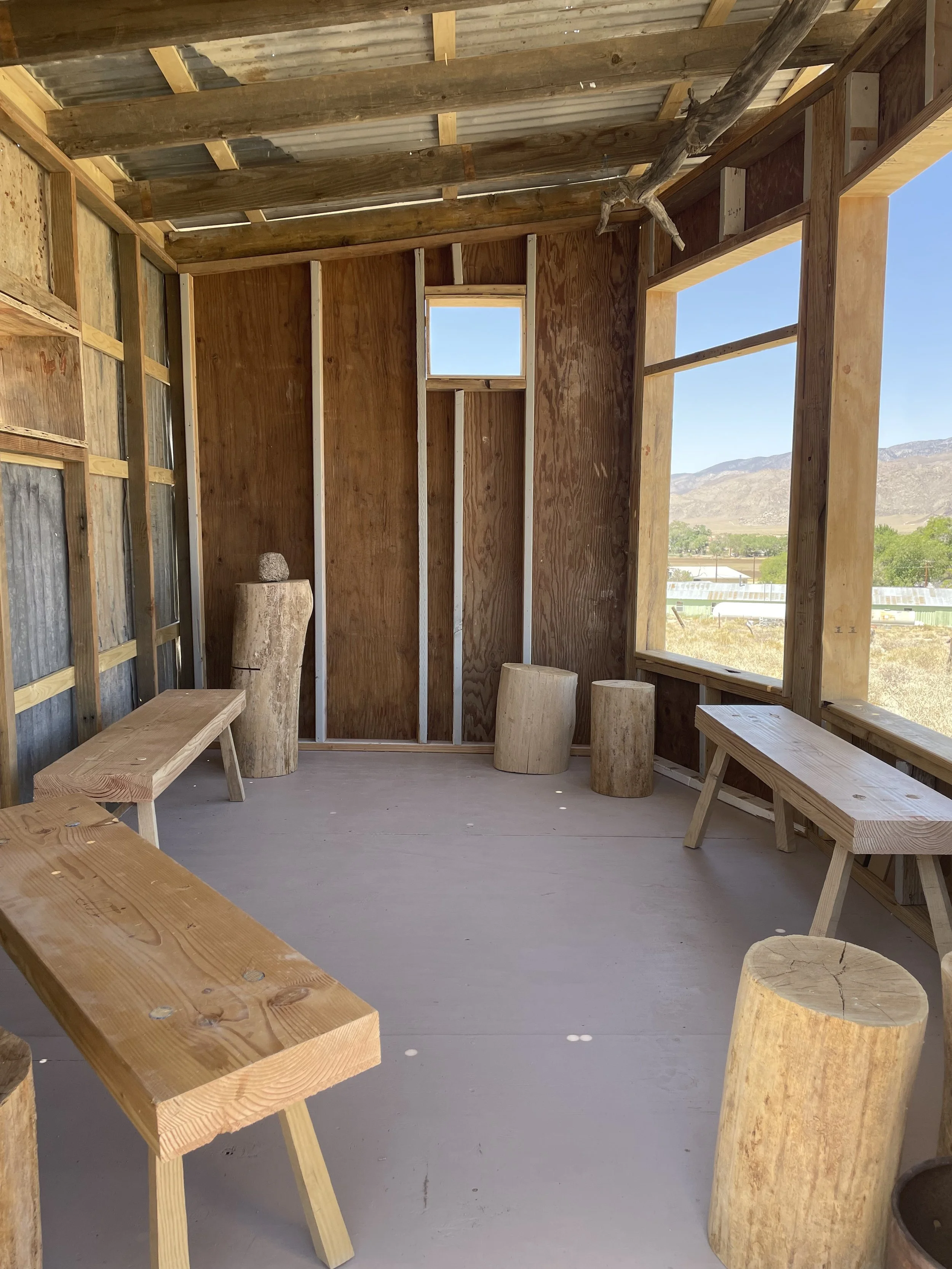 The seven-week course invited students to explore vernacular architecture and contribute a lasting structure to the campus community. Throughout, students navigated real-world design constraints—balancing material availability, function, and form—all while grounding their ideas in place-based observation and collective decision-making. Deep Springs’ mission—to prepare young people for a life of service through rigorous academics, labor, and self-governance—provided a guiding framework for the studio, reinforcing the value of hands-on learning and collaborative responsibility throughout the design-build process.