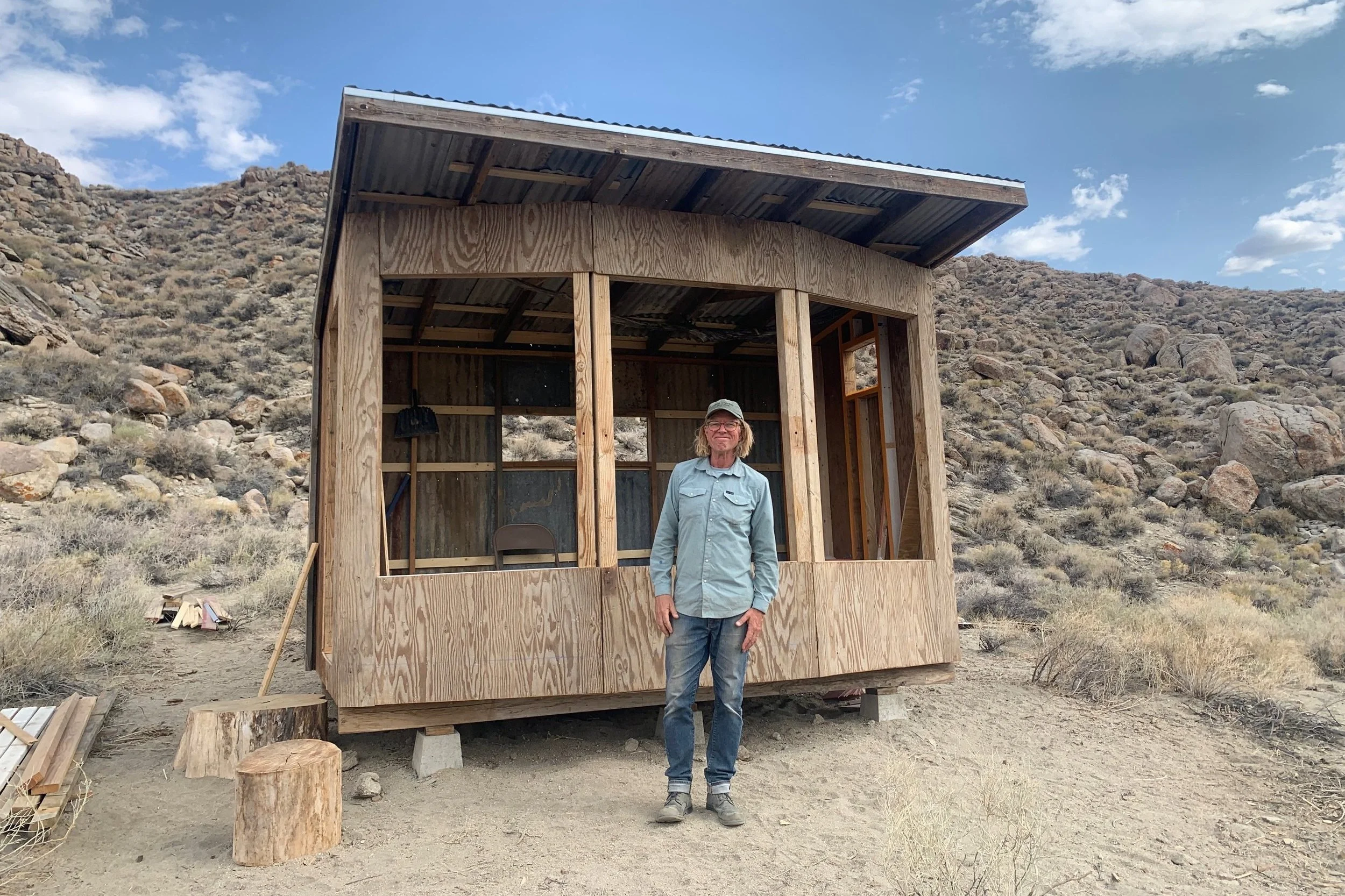 Pictured: Todd stands in front of the finished studio project built in collaboration with students at Deep Springs College.